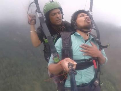 या वायरल झालेल्या फोटोमध्ये एक विपिन साहू नावाचा माणूस पॅराग्लाईडींग करत आहे. हा व्हिडीओ आपण सगळयांनी पाहिलाच असेल. हा माणूस जमिनीपासून खूप उंचावर आला आहे. तसंच तो घाबरल्यामुळे आपल्या इन्स्ट्रक्टरला ५०० रुपये आणखी घेऊन खाली उतरवण्यातची विनंती करत होता.