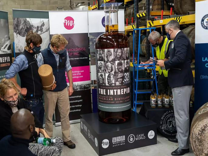 World's Largest Scotch Whisky Bottle: 32 वर्षे जुन्या मॅकलन (Macallan) ब्रँडच्या 311 लिटर मोठ्या स्कॉच व्हिस्की (Scotch whisky) बॉटलची जगातील सर्वात मोठी बॉटल म्हणून गिनीज रेकॉर्डमध्ये नोंद झाली आहे. या बॉटलचा येत्या 25 मे रोजी लिलाव होणार आहे. द इंट्रेपिड नावाने ओळखली जाणारी ही बॉटेल 5 फूट 11 इंच लांब आहे.