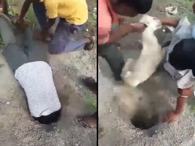 व्हायरल होत असलेल्या या व्हिडिओमध्ये तुम्ही पाहू शकता की, एक खोल आणि अतिशय अरुंद खड्डा दिसत आहे आणि काही लोक त्याजवळ उभे आहेत. यानंतर एक व्यक्ती त्या खड्ड्यात जातो आणि इतर दोघे त्याचे दोन्ही पाय पकडून त्याला उलटे खड्ड्यात पाठवतात. त्या माणसाचे अर्ध्याहून अधिक शरीर खड्ड्यात जाते आणि काही क्षणांनंतर तो बकरीच्या पिलाला बाहेर घेऊन येतो.