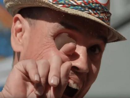 बील्ली ओवेन असं या व्यक्तीचं नाव असून तो तोंडात बोट टाकून डोळ्याच्या सॉकेटमधून बाहेर काढतो. ही गंमत किंवा खोटं नाही. हे खरं आहे. बीली एक मोटार मेकॅनिक होता. त्याला २००९ मध्ये फारच दुर्मिळ आणि घातक असा Nasal कॅन्सर झाला होता.