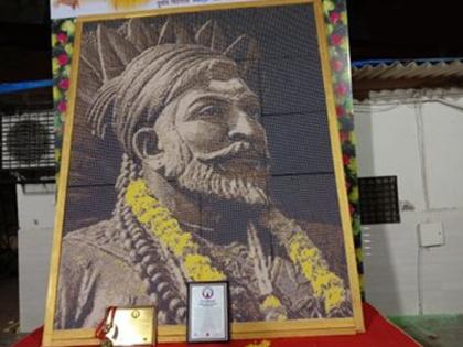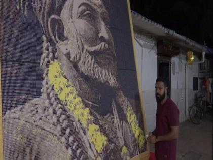Mumbai: Nitin Dinesh Kamble has made a mosaic portrait of Chhatrapati Shivaji Maharaj at Andheri on the occasion of Shiv Jayanti (birth anniversary of Chhatrapati Shivaji Maharaj as per Hindu calendar) today. He says, "this portrait has been made using 46080 plastic beads." pic.twitter.com/e9LqddPyfV