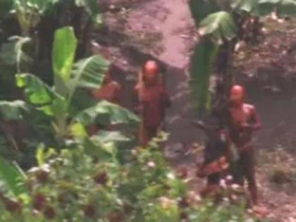 या फोटोंना झूम करुन पाहिल्यास आढळले की, या लोकांच्या हातात भाले आहेत आणि ते ड्रोन कॅमेराकडे पाहत आहेत.