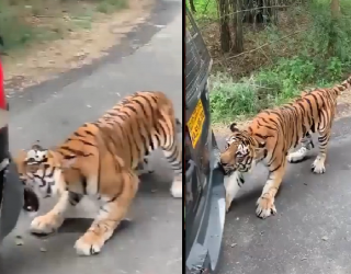 जरा हटके : कारवर हल्ला करुन वाघाने आपल्या जबड्याने ओढली कार, आनंद महिंद्रांनी शेअर केला व्हिडिओ