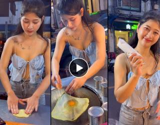 रस्त्यावरील स्टॉलवर अनोख्या पद्धतीने पराठे बनवते ही तरूणी, ग्राहकांची लागली असते रांग!