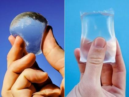 या प्रॉडक्टचं नाव आहे Ooho, जे खाता येणारं पाणी आहे. म्हणजे पाण्याने भरलेला एक छोटा बॉल. तुम्ही हे खाऊन तुमची तहान भागवू शकता. या प्रॉडक्टमुळे मॅरेथॉनसारख्या पब्लिक इव्हेंट्समध्ये प्लास्टिकच्या बॉटल्सचा वापर कमी होऊ शकतो. हा खाता येणारा वॉटर पाउच Seawood (एक समुद्री झाड) पासून तयार करण्यात आला आहे. एकतर तुम्ही हा पाउच खाऊही शकता नाही तर फेकूही शकता. काही दिवसांनी या पाउचचं कव्हर आपोआप नष्ट होतं.