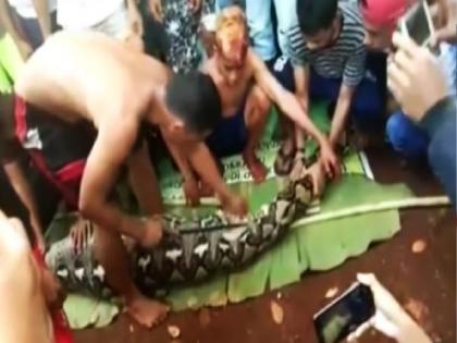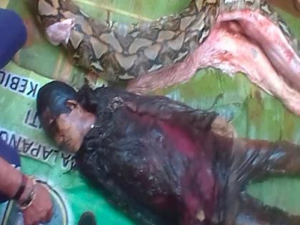 लोकांनी अजगराचे पोट फाडून महिलेचा मृतदेह बाहेर काढला. पाहा फोटो...
