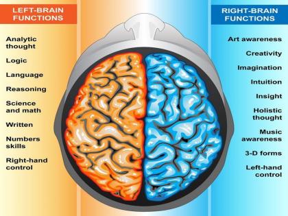 मेंदूची उजवी बाजू प्रभावी असेल तर - ज्या लोकांच्या मेंदूची डावी बाजू प्रभावी असते ते अधिक कल्पनाशील, विचारशील आणि दुसऱ्यांची काळजी घेणावे व अंतर्ज्ञानी असतात.