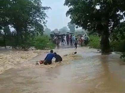 मध्य प्रदेशच्या सतना जिल्ह्यात केवळ १० रूपयांसाठी तीन मित्रांनी जीव धोक्यात टाकला. पैज होती की, पुराच्या पाण्यातून पुलावरून त्यांना बाइक घेऊन जायची आहे. जीवाची पर्वा न करता तीन मित्र या खतरनाक खेळासाठी तयार झाले. जशी बाइक नाल्यात पोहोचली, तिघांचीही भंबेरी उडाली. बाइक नाल्यात फसली. पाण्याच्या वेगात तिघे मित्रही निट उभे राहू शकत नव्हते. या घटनेची उपस्थित लोकांनी व्हिडीओ काढला.