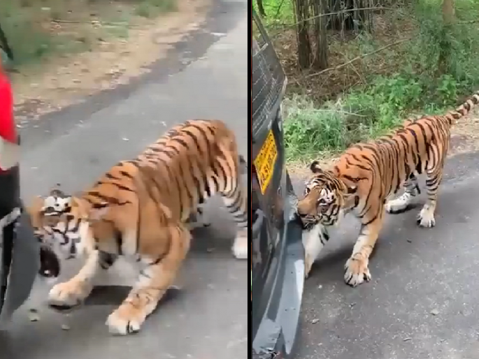 आनंद महिंद्रा यांनी ट्विट केले की, 'उटी ते म्हैसूरच्या रस्त्यावर थेप्पाकडूजवळ हे दृश्य दिसले. व्हिडिओमध्ये वाघ जी कार खेचत आहे ती महिंद्रा झायलो आहे. कदाचित माझ्याप्रमाणेच वाघाचाही असा विश्वास असेल की, महिंद्राच्या गाड्या स्वादिष्ट असतात',असे कॅप्शन त्यांनी लिहीले. हा व्हिडिओ सोशल मीडियावर चांगलाच व्हायरल होत आहे.