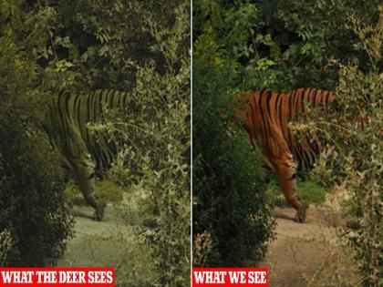 वाघ हरणाची शिकार करतानाचे अनेक व्हिडीओ तुम्ही सोशल मीडियात बघितले असतील. जास्तीत जास्त व्हिडीओजमध्ये वाघ मोठ्या मेहनतीने हरणाची शिकार करतो. पण तुमच्या मनात कधी प्रश्न पडलाय का की, वाघ हरणाची शिकार सहजपणे कसा करू शकतो? याचा शोध घेण्यासाठी इंग्लंडच्या ब्रिस्टल युनिव्हर्सिटीने रिसर्च केला. वैज्ञानिकांनुसार, मनुष्य सगळ्याप्रकारचे रंग बघून ते ओळखू शकतो. पण जनावरांचं तसं नसतं. हे समजावून सांगण्यासाठी वैज्ञानिकांनी कॉम्प्युटर स्टीमुलेशन तंत्रज्ञानाचा आधार घेतला होता.
