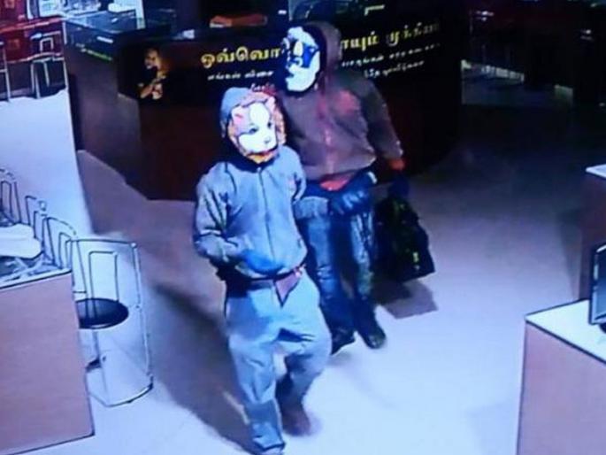 चोरांचं डोकं कसं चालतं हे तुम्हाला काही वेगळं सांगण्याची गरज नाही. कारण वेगवेगळ्या सिनेमातून आणि आजूबाजूला होणाऱ्या चोऱ्यांमधून आपण ते बघत असतो. आजकाल सीसीटीव्हीमुळे चोरांनी चोरी करण्याच्या आणखी वेगळ्या आयडिया शोधून काढल्या आहेत. चोर आता वेगवेगळे मास्क घालून आपलं काम करतात. आता हेच बघा ना तामिळनाडूतील तिरूचिरापल्लीमध्ये एका ज्वेलरीच्या दुकानात चोरी झाली. १३ कोटींचे दागिने घेऊन चोर पसार झाले. सीसीटीव्ही फुटेज चेक केलं तर त्या दोन चोर दिसले सुद्धा. पण दोघांनीही कुत्र्या-मांजरांचा मास्क घातला होता.