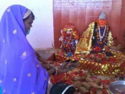 या मंदिरात देवीला चप्पल चढवण्या मागे एक वेगळीच कथा आहे. एका साधुने इथे मूर्ती स्थापन करण्यासोबतच शिव-पार्वतींचं लग्न लावून दिलं होतं आणि स्वत: कन्यादान केलं होतं. तेव्हापासून या देवीची ते आपली मुलगी मानून पूजा करतात आणि सामान्यांप्रमाणे मुलीची प्रत्येक इच्छा पूर्ण करतात.