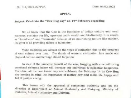 दरम्यान, 14 फेब्रुवारीला 'व्हॅलेंटाईन डे'ऐवजी गायींना मिठी मारण्याचा दिवस साजरा करावा, अशी मागणी करण्यात आली आहे. या महिन्यात प्रेमी युगुलांवर प्रेमाची नशा चढलेली असते. 7 फेब्रुवारीपासून 14 फेर्बुवारीपर्यंत कपल्स पत्येक दिवस खासरित्या साजरा करतात. पण, अॅनिमल वेलफेअर बोर्डाने 14 फेब्रुवारीला 'व्हॅलेंटाईन डे'ऐवजी काउ हग डे (Cow Hug Day) म्हणजेच गायींना मिठी मारण्याचा दिवस म्हणून साजरा करावा, असे आवाहन करण्यात आले आहे.