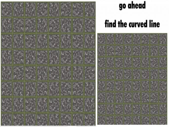अचानक जेव्हा फोटो नजर टाकाल तेव्हा असं प्रतीत होतं की, सरळ रेषांमध्ये काही रेषा घुमावदार आहेत. पण असं नाहीये. कारण ग्रे कलरच्या रेषा कन्फ्यूज करत आहेत. यालाच ऑप्टिकल इल्यूजन असं म्हणतात. हा फोटो सहजपणे यूजर्सना चकीत करत आहे. जेव्हा यूजर्स या फोटोतील तिरप्या रेषा शोधत होते तेव्हा भलेभले लोक वैतागले. काही लोकांनी बराच वेळ फोटो बघून हार मानली. बघा तुम्हाला तरी सापडतात का?