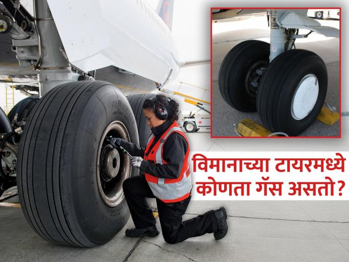 विमानांच्या टायरमध्ये नायट्रोजन भरलं जातं. नायट्रोजन गॅस ज्वलनशील नसतो. हेच कारण आहे की, तापमान आणि दबावातील बदलाचा यावर सामान्य हवेच्या तुलनेत कमी प्रभाव पडतो. नायट्रोजन गॅस असल्यानं टायरांमध्ये घर्षण झाल्यावरही आग लागण्याचा धोका नसतो.