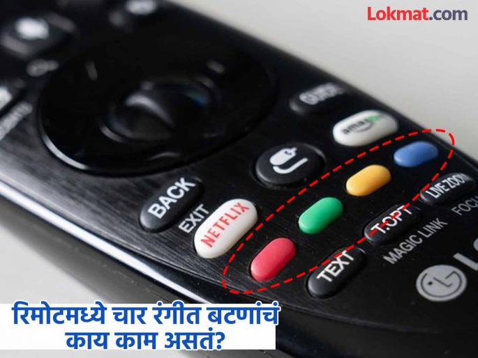 ही रंगीबेरंगी बटणे रिमोटमध्ये का असतात? याच प्रश्नाचं उत्तर आपण आज जाणून घेणार आहोत. आपल्याला माहीत नसेल पण जे जुने टीव्ही होते त्यांच्या रिमोटमध्ये ही बटणे टेलीकास्ट सर्व्हिससाठी दिले जात होते. जुन्या टीव्हीच्या रिमोटमध्ये या बटणांनी एक वेगळा मेन्यू उघडला जात होता. आता आपण हे जाणून घेऊया की, सेट - टॉप बॉक्सच्या रिमोटमध्ये ही बटणे का असतात. सेट - टॉप बॉक्सच्या रिमोटमध्ये ही बटणे भाषा बदलण्यासाठी किंवा एखादी सेवा सुरू करण्यासाठी किंवा रेकॉर्डिंग लॉक करण्यासाठी किंवा एडिट करण्यासाठी कामात येतात. तेच स्मार्ट टीव्हीबाबत सांगायचं तर स्मार्ट टीव्हीच्या रिमोटमध्ये हे बटणे मेन्यूमध्ये आणि अॅप-स्पेसिफिक फंक्शन नॅव्हिगेट करण्यासाठी असतात.