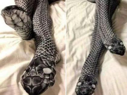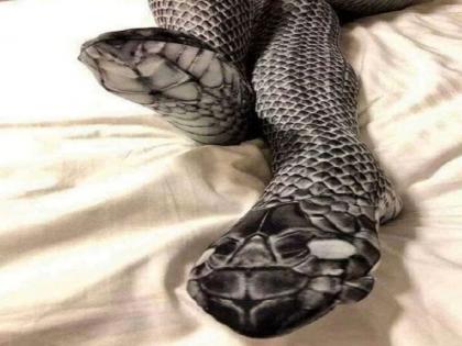 या फोटोंमधून हे स्पष्ट दिसतं की, या महिलेच्या पायातील मोजे सापासारखेच दिसत आहेत. आता अशावेळी असं चित्र पाहिल्यावर कोणता व्यक्ती घाबरणार नाही? पण यातून हेच समोर येतं की, फॅशन करतानाही जरा सांभाळून करा नाही तर तुम्हालाच ते महागात पडू शकतं.