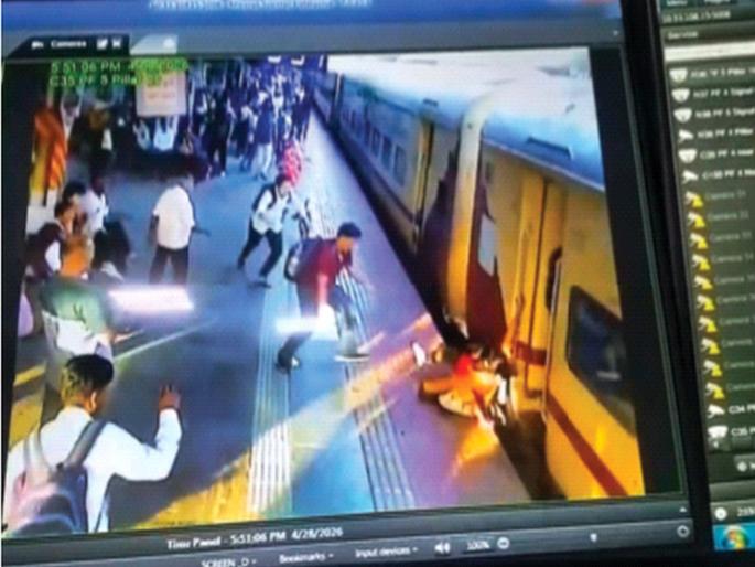 कल्याण रेल्वे स्थानकामध्ये मंगळवारी एक महिला आणि तिच्या एका वर्षाच्या मुलाला आरपीएफचे साहाय्यक उपनिरीक्षक हेमंत भरगुडे यांनी वाचविले तो थरारक क्षण.