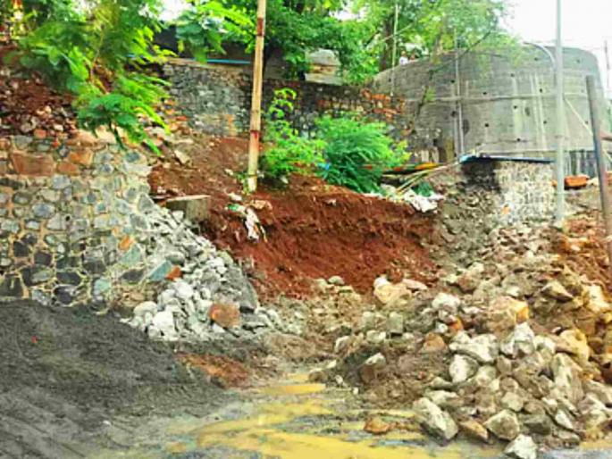 लोकमत न्यूज नेटवर्क, कल्याण: ऐतिहासिक किल्ले दुर्गाडीची संरक्षक भिंत बुधवारी पहाटे चार वाजता कोसळली. पहिल्याच पावसात किल्ल्याची भिंत कोसळल्याने दुर्गाडीच्या सुशोभीकरण, मजबुतीकरणाचे सुरू असलेले काम निकृष्ट दर्जाचे आहे, हे उघड झाले आहे. या घटनेमुळे शिंदे, उद्धवसेना आक्रमक झाल्या आहेत. त्यांनी प्रशासनाला धारेवर धरले.