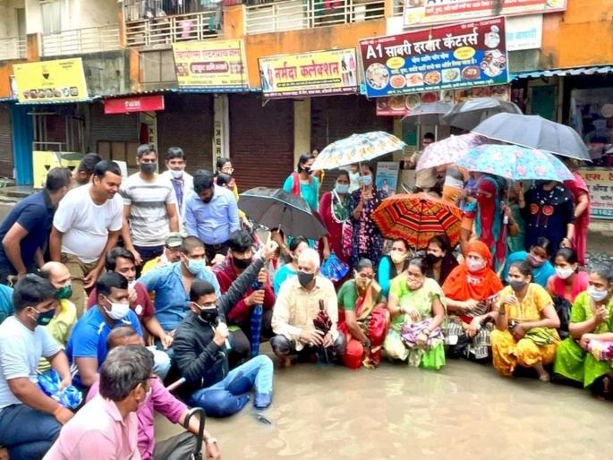 घरात पावसाचे पाणी साचले; संतप्त नागरिकासह माजी नगरसेवकाचे पाण्यातच ठिय्या आंदोलन