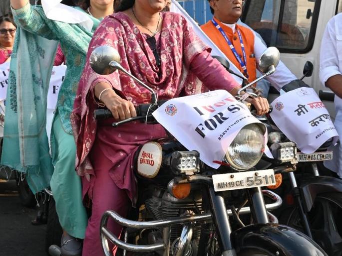 कल्याण-मागच्या लोकसभा निवडणूकीत कल्याण लोकसभा मतदार संघातील मतदानाची टक्केवारी राज्यात खालून पहिली होती. मतदानाची टक्केवारी वाढविण्यासाठी कल्याण डोंबिवली महापालिकेकडून जनजागृती केली जात आहे. आज कल्याणमध्ये काढण्यात आलेल्या मतदान जनजागृती बाईक रॅली महापालिका आयुक्त डॉ. इंदूराणी जाखड सहभागी झाल्या होत्या. बाईक चालविण्याचे काम शहर अभियंत्या अनिता परदेशी यांनी केले. तर त्यांच्या मागच्या सीटवर आयुक्त बसल्या होत्या.