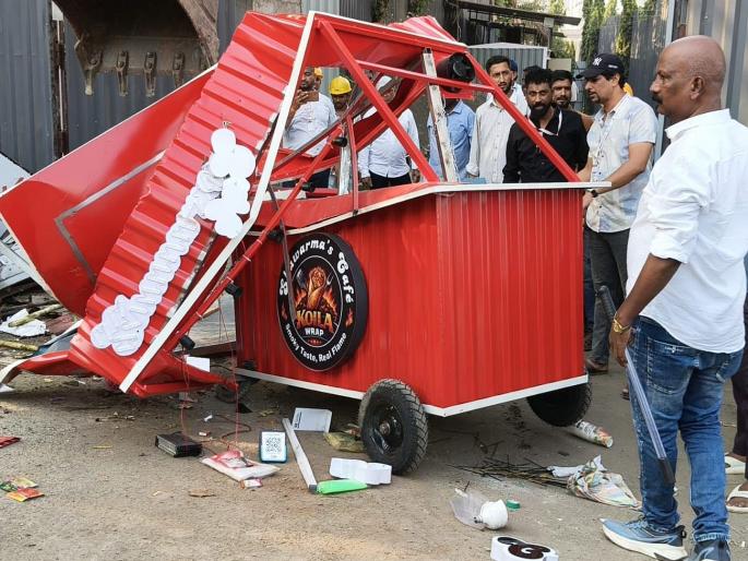 शुक्रवारी फेरीवाला पथक घरडा सर्कल ते पेंढरकर कॉलेज परिसरात फेरीवाल्यांच्या विरोधात कारवाईसाठी पाेहचले होते. त्याठिकाणी कारवाईस एका सँडविच विक्रेत्याने तीव्र विरोध केला. अधिकारी सुरेश कामराज याला बांबूने मारहाण केली. या घनटेत सुरेश कामराज जखमी झाले. त्यामुळे पथकाला काल कारवाई न करताच माघारी फिरावे लागले होते. फेरीवाल्यांचा कारवाईस झालेला विरोध पाहता महापालिकेचे उपायुक्त प्रसाद बाेरकर यांनी आज फेरीवाला हटाव पथकासह सगळा फौजफाटा घेऊन घरडा सर्कल ते पेंढरकर कॉलेज परिसरातील सगळया फेरीवाल्यांच्या विरोधत धडक कारवाई केली. आजही फेरीवाल्यांनी कारवाईस विरोध करण्याचा प्रयत्न केला. मात्र आज त्यांचा विरोध कारवाई पथकाने हाणून पाडला. सगळे फेरीवाले पिटाळून लावण्यात आले. यावेळी काही फेरीवाल्यांनी महापालिकेच्या अधिकारी वर्गावर गंभीर आरोप केले. फेरीवाल्यांकडून महापालिकेचे कारवाई पथक पैसे उकळत असल्याचा आरोप करण्यात आला. मात्र हा आरोप प्रशासनाने फेटाळून लावला. जवळपास ४० टपऱ्या हटविण्याची कारवाई आज करण्यात आली.