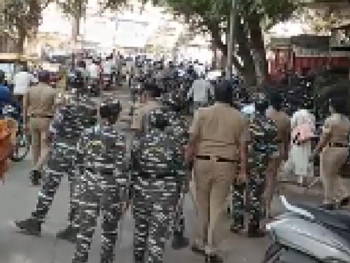 नाट्यगृह जवळील डीकेटीई शाळेच्या केंद्रासमोर मोठी गर्दी जमल्याने पोलिसांच्या राखीव तुकडीने तेथे धाव घेत जमावाला पांगवले