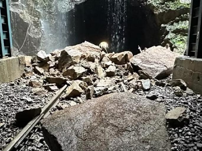 पावसामुळे दूधसागरनजीक रेल्वे मार्गावर कोसळली दरड
