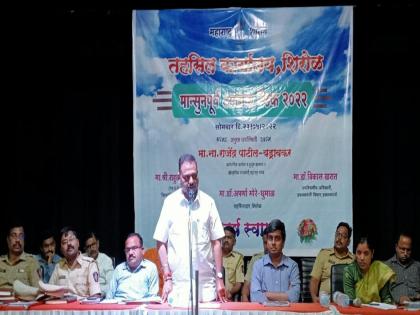जयसिंगपूर येथील स्व.शामराव पाटील-यड्रावकर नाट्यगृहात राज्यमंत्री डॉ. यड्रावकर यांच्या अध्यक्षतेखाली सोमवारी सायंकाळी मान्सूनपूर्व आढावा बैठक पार पडली. यावेळी जिल्हाधिकारी राहुल रेखावार, प्रांताधिकारी डॉ. विकास खरात, तहसीलदार डॉ. अपर्णा मोरे, गटविकास अधिकारी शंकर कवितके, पोलीस उपअधीक्षक रामेश्वर वैजणे, तालुका कृषी अधिकारी गणेश भोसले यांच्यासह अधिकारी उपस्थित होते.