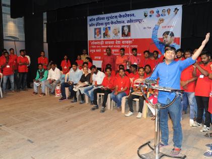 कोल्हापूर येथे बुधवारी ‘लोकशाही वाचवा, देश वाचवा’ परिषदेत कन्हैयाकुमारने उपस्थितांसमोर आपली भूमिका मांडली. (छाया- आदित्य वेल्हाळ)