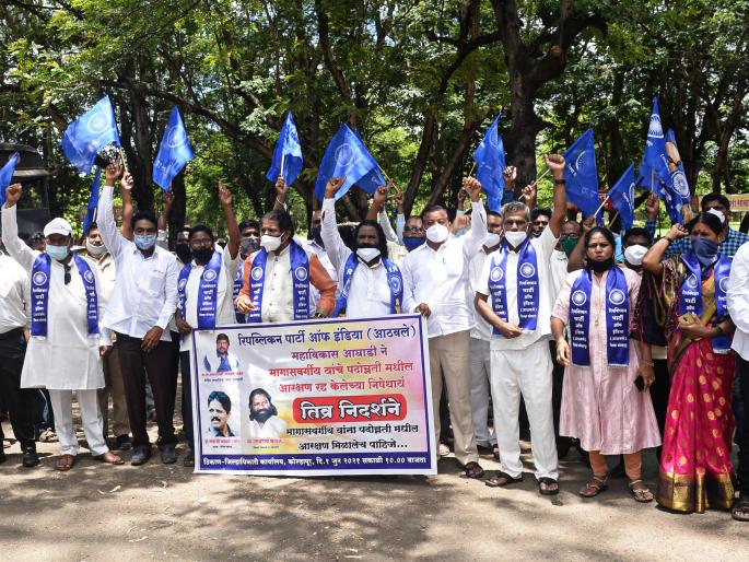 कोल्हापूर : राज्य शासनाने शासकीय सेवेतील अधिकारी व कर्मचाऱ्यांमधील पदोन्नतीत मागासवर्गीयांचे ३३ टक्के आरक्षण रद्द करू नये, या मागणीसाठी मंगळवारी रिपब्लिकन पार्टी ऑफ इंडियाच्या वतीने जिल्हाधिकारी कार्यालयासमोर निदर्शने करण्यात आली. यावेळी जिल्हा प्रशासनाला विविध मागण्यांचे निवेदन देण्यात आले.या निवेदनात राज्य शासनाने पदोन्नतीत मागासवर्गीयांचे पूर्वीचे आरक्षण रद्द करून खुल्या प्रवर्गातून पदे भरण्याचा निर्णय घेतला आहे, जो घटनाबाह्य आहे. न्यायालयात हे प्रकरण सुरू असताना असा निर्णय घेणे चुकीचे आहे. मराठा आरक्षणाचा प्रश्न तात्काळ सोडवावा, स्थानिक स्वराज्य संस्थेच्या निवडणुकीत ओबीसींचे आरक्षण रद्द करून महाराष्ट्रात घातला गेलेला गोंधळ थांबवावा, गरीब कष्टकरी नागरिकांना जीवनावश्यक साहित्य पुरविण्यात यावे, अशी मागणी करण्यात आली आहे.