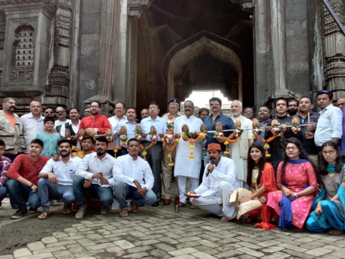 कोल्हापूर : येथील हिल रायडर्स तर्फे मंगळवारी जुना राजवाडा (भवानी मंडप) कमानीस आयुक्त डॉ. मल्लिनाथ कलशेट्टी, अभिनेते आनंद काळे, सन्मती मिरजे, विजय देवणे, पोलीस निरीक्षक प्रमोद जाधव, सूर्यकांत पाटील, प्रसाद संकपाळ यांच्या हस्ते तांब्याच्या कलशाचे मंगल तोरण बांधण्यात आले.साहस हा पाया, ऐतिहासिक वास्तूचे जतन हे ध्येय उराशी बाळगून या ऐतिहासिक वास्तूचे जतन व्हावे. मुख्य हेतूंनी विजयादशमीदिवशी कमानीस तोरण बांधण्यात येते. या उपक्रमाचे यंदाचे ३१ वे वर्ष आहे. यावेळी छत्रपती संभाजी महाराज मालिकेतील कोंडाजी बाबा या भूमिकेतील उत्कृष्ट अभिनयाबद्दल अभिनेते आनंद काळे यांचा सत्कार करण्यात आला.दरम्यान महापुरावेळी काम केलेल्या बांधिलकी फौंडेशन, सावली फौंडेशन, वुई केअर, रोटरी मुव्हमेंन्ट, उमेद फौंडेशन, पॅराडाईज ग्रुप, जीवन ज्योत, जीवन आधार, आपत्कालीन जिल्हा व्यवस्थापन या संस्थांचा गौरव करण्यात आला. यावेळी गिर्यारोहणाच्या सरावासाठी दसऱ्याच्या मुहूर्तावर सुरुवात करणार असल्याचे जाहीर करण्यात आले.