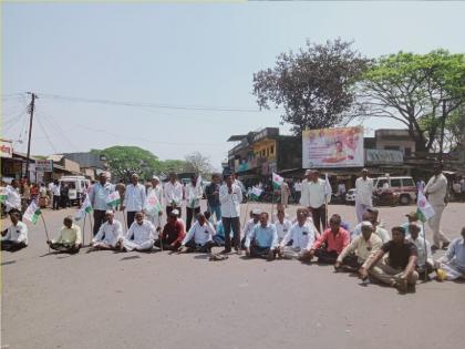 मुदाळतिट्टा येथे शेतकरी संघटनेच्या कार्यकर्त्यांनी रस्त्यावर ठिय्या मारला आहे.