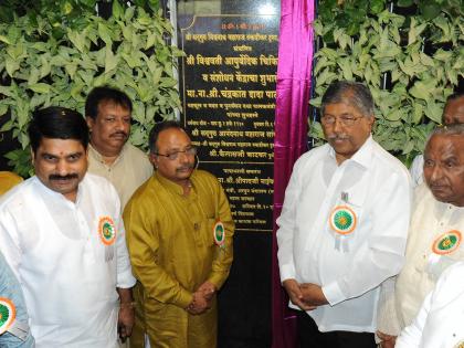 विश्वपंढरी येथे बुधवारी विश्ववती आयुर्वेद चिकित्सालय व संशोधन केंद्राचे उदघाटन पालकमंत्री चंद्रकांत पाटील यांच्या हस्ते झाले. यावेळी कैलास काटकर, आमदार सतेज पाटील, आनंदनाथ महाराज, माजी खासदार कल्लाप्पाण्णा आवाडे, माणिक पाटील चुयेकर, आमदार सुजित मिणचेकर आदी उपस्थित होते. (छाया : आदित्य वेल्हाळ)