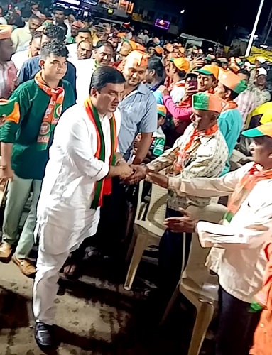 चुकीचे चिन्ह सांगितल्याचे लक्षात येताच त्यांनी सॉरी म्हणत कमळ या चिन्हाचा उल्लेख केला. त्यावर उपस्थितांमध्ये एकच हास्य फुलले. या सभेच्या सुरुवातीला माजी सरपंच बाबुराव पाटील, एम. एस. पाटील, राजन पाटील, शिवाजीराव कदम, आदींनी मनोगत व्यक्त केले.
