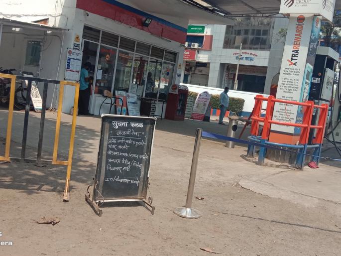 विनाकारण शहरात फेरफटका मारणाऱ्यांवर अंकुश बसावा, याकरिता जिल्हाधिकाऱ्यांनी सर्वसामान्यांना पेट्रोल, डिझेल विक्री करू नये, अशा सूचना पेट्रोल पंपचालकांना दिल्या आहेत. त्यानुसार शहरातील दाभोळकर कॉर्नर परिसरातील पेट्रोल पंपावर अत्यावश्यक सेवेत काम करणाऱ्यांकरिता इंधन देण्याच्या सूचना असलेला बोर्ड लावण्यात आला आहे.
