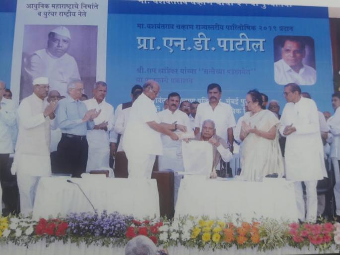 विद्यानगर, ता. कऱ्हाड येथील सद्गुरू गाढगे महाराज महाविद्यालयात यशवंतराव चव्हाण प्रतिष्ठाणच्यावतीने 'यशवंतराव चव्हाण राज्यस्तरीय पुरस्कार २०१९' राष्ट्रवादी काँग्रेसचे अध्यक्ष माजीकेंद्रिय मंत्री शरद पवार यांच्या हस्ते डॉ. एन. डी. पाटील व सरोजताई पाटील यांना सपत्नीक प्रदान करण्यात आला. यावेळी ते बोलत होते.