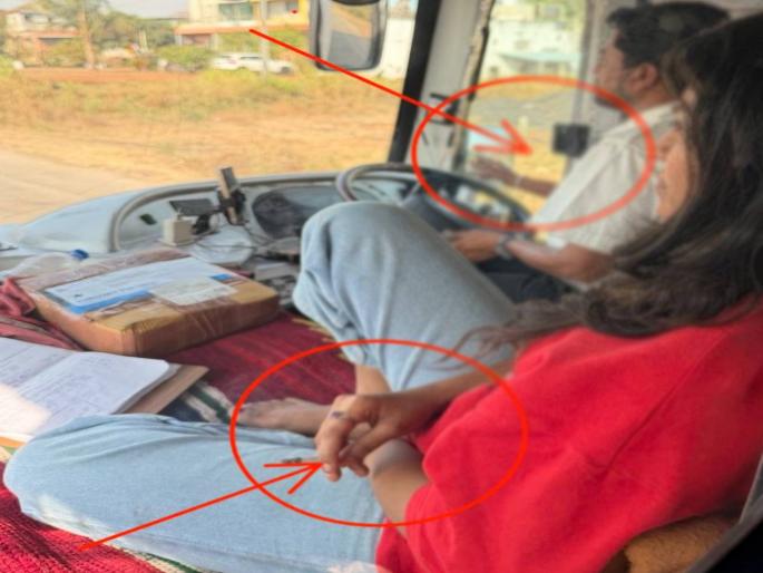 या आराम बसचा चालक आणि समोरच्या सीटवर बसलेली एक महिला प्रवासी चालत्या बसमध्येच सिगारेट ओढत असल्याची तक्रार प्रवाशांनी केली.