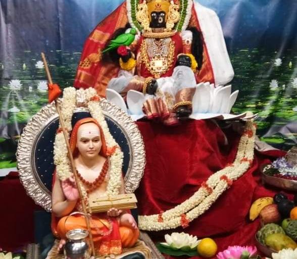 या स्तोत्रातील श्लोकाचा अर्थ असा : जिचा देह अतिशय सुंदर आहे. जी शांतस्वरुप आहे. जिचे सुंदर केस रुळत आहेत, जी चिंतनाच्याही पलिकडे आहे जी एखाद्या वेलीप्रमाणे नाजूक व वाढत राहणारी आहे. जिचे स्वरुप सृष्टीच्या आधी निर्माण झाले असून तापसी योगी जिचे ध्यान करतात अशा माझ्या त्या अनंतस्वरुपी शारदामातेची मी पूजा व भजन करतो. स्मरण करतो. या वर्णनानुसार शुक्रवारी अंबाबाईची पूजा बांधण्यात आली. ही पूजा मंदार मुनिश्वर, मयुर मुनिश्वर व रवि माईणकर यांनी बांधली.