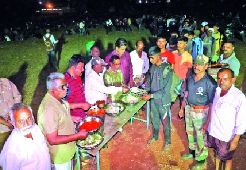 बुधवारी क्रिडाई कोल्हापूरतर्फे यावेळी निवासी उपजिल्हाधिकारी संजय शिंदे, क्रिडाईचे अध्यक्ष महेश यादव यांच्या हस्ते रात्री जेवण वाटप करण्यात आले. याचा लाभ एक हजाराहून अधिक उमेदवारांनी घेतला. गेले आठवडाभर सुरू असलेल्या भरती प्रक्रियेत ‘क्रिडाई’च्या वतीने अल्पोपाहाराचे वाटप करण्यात आले. याप्रसंगी उपाध्यक्ष विद्यानंद बेडेकर, सचिव के. पी. खोत, खजानिस सचिन ओसवाल, जॉइंट सेक्रेटरी रविकिशोर माने, कृष्णा पाटील, संदीप मिरजकर, गणेश सावंत, रवी पाटील, विलास आवटी, आदित्य बेडेकर हे उपस्थित होते.