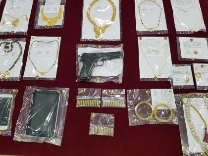 संशयित राजू तुकाराम सुतार (वय २८, रा. कारंडे गल्ली, लक्षतीर्थ वसाहत, मूळ रा. वैभववाडी, ता. सिंधुदुर्ग) असे त्याचे नाव आहे. त्याच्याकडून १0 घरफोडींचे गुन्हे उघडकीस आले असून, सर्व्हिस पिस्टल, २८ जिवंत राऊंड, २६ तोळे सोन्याचे दागिने, पाच मोबाईल, चांदीचा हार, लोखंडी कटावणी, स्क्रु ड्रायव्हर, कात्री आणि कटर असा सुमारे १० लाख किमतीचा मुद्देमाल जप्त केला. त्याच्याकडून आणखी गुन्हे उघडकीस येण्याची शक्यता असल्याची माहिती पोलीस अधीक्षक डॉ. अभिनव देशमुख यांनी पत्रकार परिषदेत दिली.