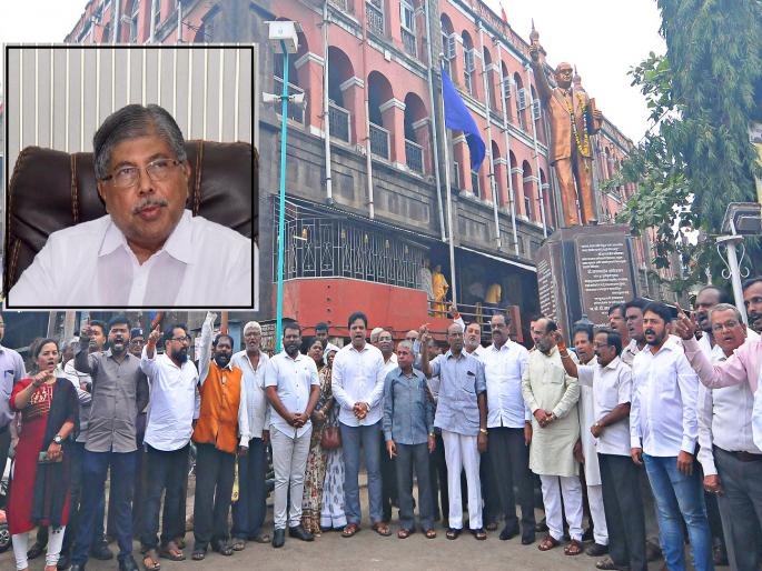 कोल्हापूर : डॉ. बाबासाहेब आंबेडकर, महात्मा फुले यांच्याबद्दल मंत्री चंद्रकांत पाटील यांनी अनुद्गार काढल्यामुळे महाराष्ट्रात जातीय तणाव निर्माण झाला आहे. त्यामुळे त्यांच्यावर ॲट्रॉसिटीचा गुन्हा दाखल करावा अशी मागणी महाविकास आघाडीच्या पदाधिकाऱ्यांनी निवेदनाव्दारे केली आहे.निवासी उपजिल्हाधिकारी दत्तात्रय कवितके यांच्याकडे आज, सोमवारी सायंकाळी हे निवेदन देण्यात आले. त्यांनी भावना शासनाला कळवण्याचे आश्वासन दिले. तत्पूर्वी सर्व पदाधिकारी आणि कार्यकर्ते महापालिकेच्या डॉ. बाबासाहेब आंबेडकर यांच्या पुतळ्याजवळ जमले. या ठिकाणी आंबेडकर यांचा जयघोष करत पाटील यांच्या धिक्काराच्या घोषणा देण्यात आल्या.यानंतर सर्वजण जिल्हाधिकारी कार्यालयात आले. शिवसेना जिल्हाप्रमुख विजय देवणे म्हणाले, पाटील यांच्या वक्तव्यांमुळे जातीय तणाव निर्माण झाला आहे. राज्यातील कायदा आणि सुव्यवस्था धोक्यात आली आहे. त्यांच्यावर गुन्हा दाखल व्हावा.