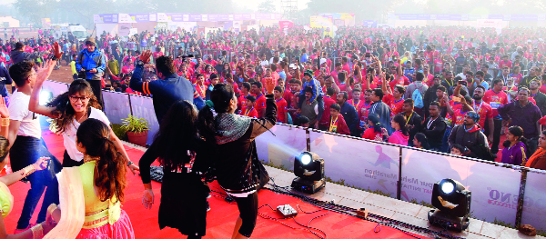 विशाल, वैष्णवीच्या सुरांवर थिरकले पाय : या संपूर्ण महामॅरेथॉनच्या दरम्यान कोल्हापूरच्या विशाल सुतार आणि वैष्णवी गोरड यांच्या हिंदी, मराठी गीतांनी पोलीस मैदानावर वेगळीच वातावरण निर्मिती केली. त्यांच्या अनेक गीतांवर तरुणाईने ठेका धरला. अगदी वयस्कर महिला आणि पुरुषांनीही ‘लोकमत महामॅरेथॉन’च्या निमित्ताने आपले नृत्यकौशल्य दाखवून दिले.