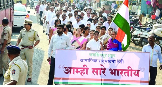 जयसिंगपुरात कोणत्याही कारणास्तव शहर बंद न ठेवता शहरात यापुढेही सामाजिक सलोखा कायम ठेवण्याचा निर्धार करण्यात आला. त्यासाठी शनिवारी ‘आम्ही सारे भारतीय’ या बॅनरखाली सामाजिक सद्भावना रॅली काढण्यात आली.