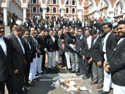 कोल्हापूर : न्यायालयीन शुल्कवाढीविरोधात वकील बांधव रस्त्यावर, परिपत्रकाची होळी, कामकाजापासून अलिप्त