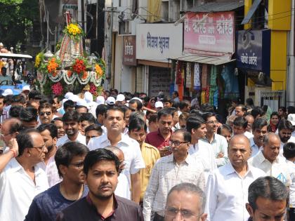 कोल्हापुरात भगवान महावीर जयंतीनिमित्त गुरुवारी समस्त जैनबांधवांच्यावतीने गंगावेश ते दसरा चौक येथे पालखी व रथ मिरवणुकीचे आयोजन करण्यात आले होते.(छाया : आदित्य वेल्हाळ)