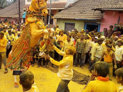 गुरुवार (दि.१५) सकाळी ७ वाजता ढोल कैताळाच्या गजरात व भंडाऱ्याच्या उधळणीत बाळूमामांच्या नामाचा जयघोष करत पालखी सोहळा मरगुबाई मंदिराकडे गेला. यावेळी धनगरी बांधव ढोलवादन करत होते तर बाळूमामांची मानाची घोडी नृत्य करत या पालखी सोहळ्यातून पुढे पुढे सरकत होती. या भव्यदिव्य पालखी सोहळ्यातील नृत्य करणाऱ्या घोड्यांनी सर्वांचे लक्ष वेधून घेतले होते.