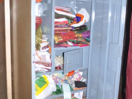 चोरट्यांनी विस्कटलेली मंदिरातील कपाटातील साहित्य. (मज्जीद किल्लेदार)
