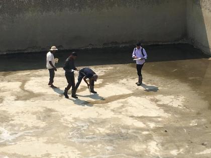 कोल्हापुरातील संभाजीनगर येथील विभागीय क्रीडासंकुलातील जलतरण तलावातील बांधकामाचे शनिवारी आयआयटीच्या तज्ज्ञांनी नमुने घेतले.