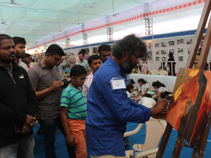 कोल्हापूर : व्यासपीठावर सुरू असलेली सुरांची मैफल आणि भव्य दालनात चित्रकारांचे कॅनव्हासवर मुक्त फटकारे, रंगातून उमटलेली चित्रकृती, वळणदार बोटांनी साकारलेले शिल्प, अशा विविध कलाविष्कारांनीकोल्हापूरकलामहोत्सवात रंगत आणली.दसरा चौकातील मैदानावर कोल्हापूर आर्ट फौंडेशनच्या वतीने आयोजित कलामहोत्सवात मान्यवर कलावंतांच्या प्रात्यक्षिकांनी कला महाविद्यालयांतील विद्यार्थीच नव्हे, तर रसिक कोल्हापूरकरांचेही कलाविश्व समृद्ध केले.कलामहोत्सवात सकाळी चित्रकार विजय टिपुगडे, शिवाजी म्हस्के, आदिती कांबळे, सुनील पंडित, आर. एस. कुलदीप, नेहा जाधव या चित्रकारांनी निसर्गचित्र, पोट्रेट, अॅबस्ट्रॅक अशा विविध प्रकारांतील चित्र कॅनव्हासवर अवतरले. तर समृद्धी पुरेकर यांनी पोलीस बांधवांचे व्यक्तिचित्रण करून त्यांच्या कामाचा सन्मान केला. शिल्पकार अतुल डाके व किशोर पुरेकर यांनी व्यक्तिशिल्प साकारले.एकीकडे हा चित्र-शिल्पाविष्कार सुरू असताना व्यासपीठावर नादब्रह्म ग्रुपने या महोत्सवात सुरेल वातावरणाची निर्मिती केली. उपशास्त्रीय संगीत मैफल आणि फ्युजनचे सादरीकरण करत त्यांनी रसिकांचे कान तृप्त केले.
